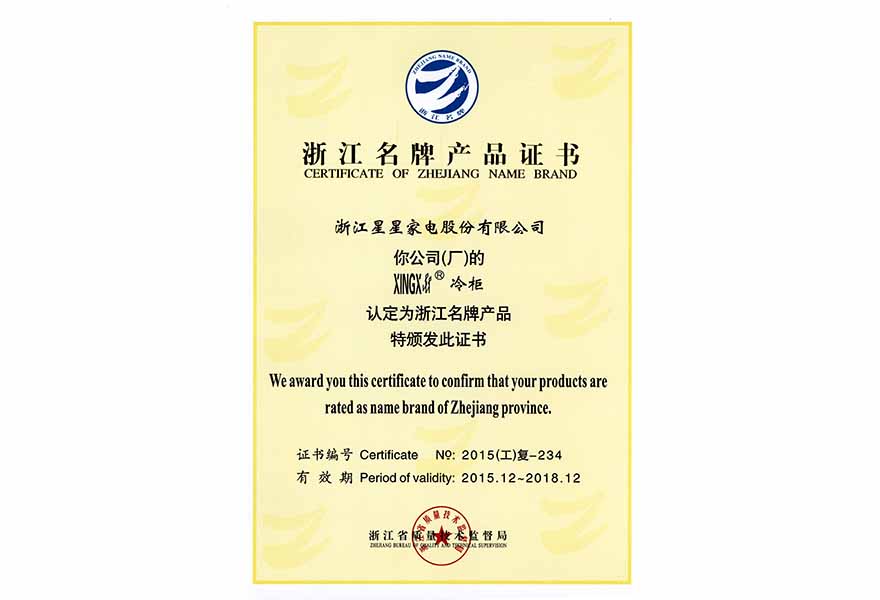 浙江名牌產(chǎn)品證書