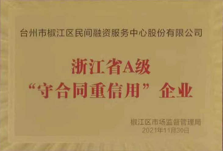 椒江民融中心先后獲得“區服務業重點企業”、“區消費者信得過單位”、“企業貢獻獎”、“經濟工作先進集體”、“區級服務業發展引導獎”、“浙江省A級守合同重信用企業”、“五星基層黨組織”、“浙江省服務小微企業優秀機構”“清廉金融建設示范點”等榮譽,是浙江省民融研究部和臺州市民融行業委員會召集人單位,列入國務院七部委頒布的《浙江省臺州市小微企業金融服務改革創新試驗區總體方案》。