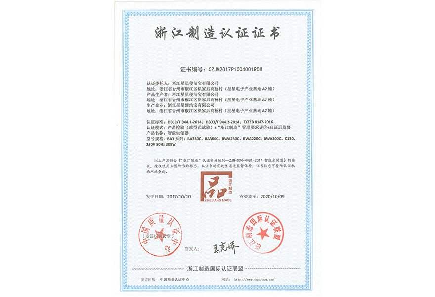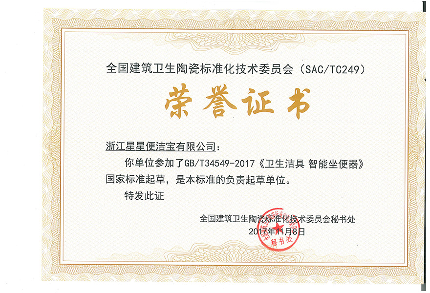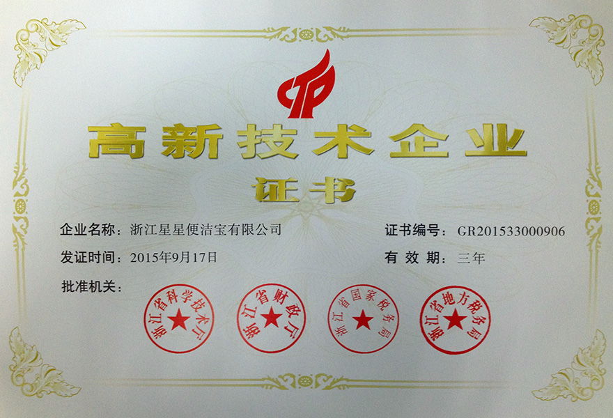 浙江星星便潔寶有限公司成立于1998年,歷經(jīng)20余年的發(fā)展,現(xiàn)已成為國內(nèi)技術水平領先、產(chǎn)能規(guī)模居前,以自主品牌為主的智能馬桶龍頭企業(yè),參與起草了國家、行業(yè)、地方的三大產(chǎn)品標準,獲“全國感應潔具十強企業(yè)”、智能馬桶“浙江制造”首張認證、“浙江省知名商號”、“浙江省名牌產(chǎn)品”、“紅棉設計獎”、“臺州市政府質(zhì)量獎”、“紅頂獎提名獎”等榮譽稱號,產(chǎn)品成功入選G20西湖國賓館、中央黨校。