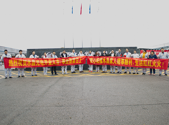 2月12日,春節后上班第一天,水晶光電總經理王震宇攜領導班子一行先后來到濱海廠區和洪家廠區,親切走訪慰問了廣大員工,送上了真切的關心和祝福,為新一年的工作擂響戰鼓。