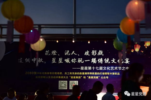為了積極落實前階段省委宣傳部王四清部長調研星星時提出的關于文化分眾供給的指示精神,星星第十七屆文化藝術節結合公司當前實際,借中秋這一中國人珍視的傳統節日,在園區廣場為廣大員工送上了一場關乎花燈、泥人、臉譜、皮影戲的傳統文化盛宴。來自集團各單位不同層面的員工月下花燈、濟濟一堂,共話中秋文化盛宴。